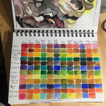 She plays in many mediums, though her focus is on oil paints and abstract animals. Lately been playing with Gouache and watercolor on canvas.